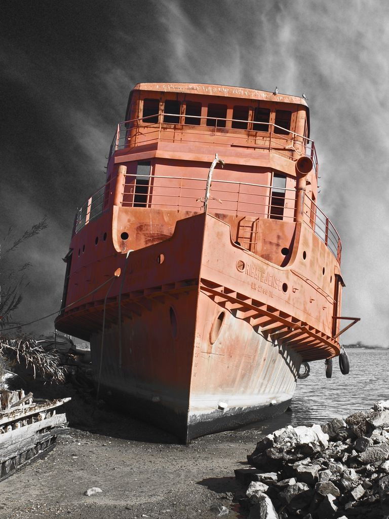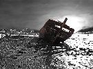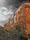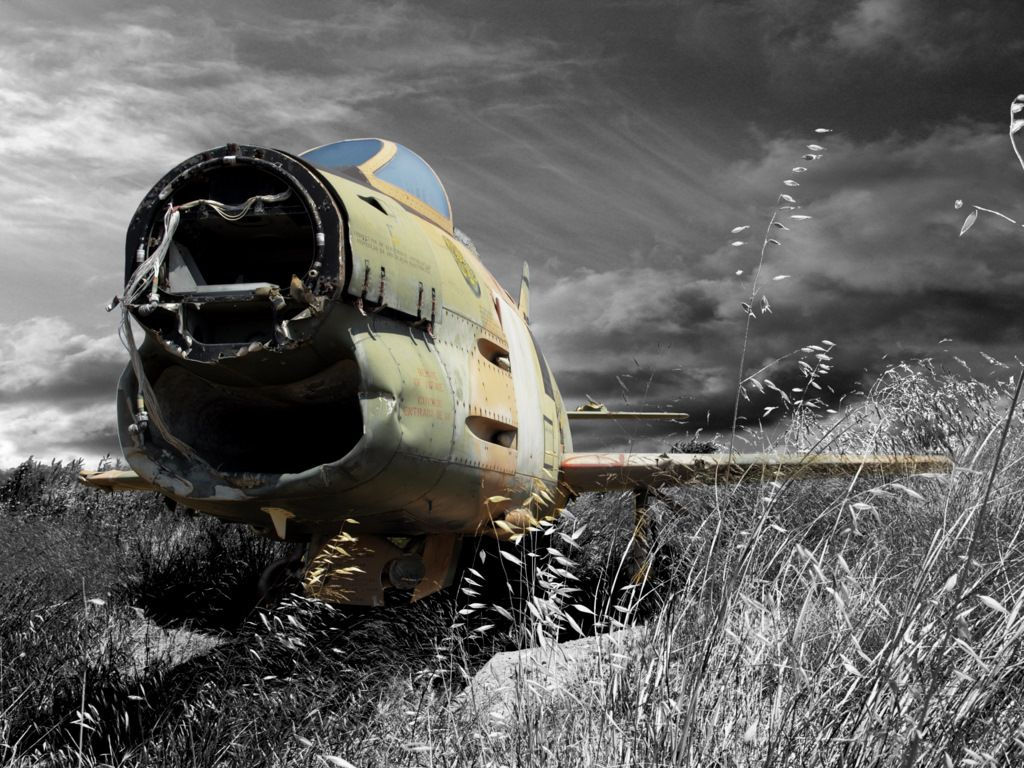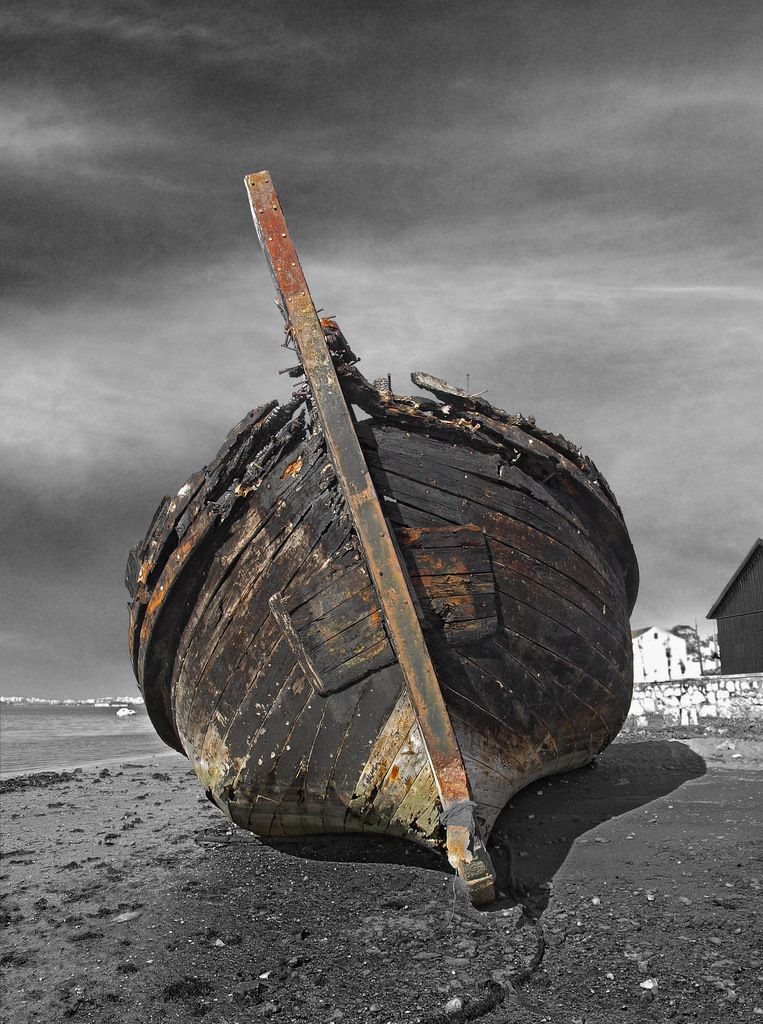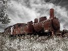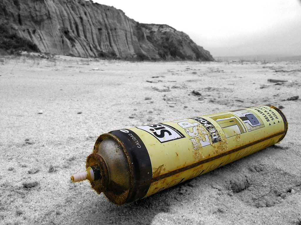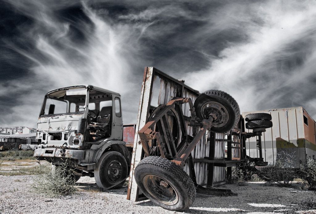 que retrata objectos ferrugentos e abandonados na natureza, serve como chamada